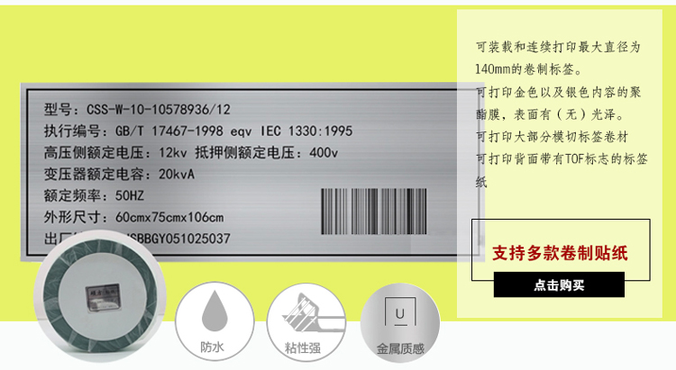 | 打印介质 | 硬质板(PVC、ABS);卷质标签(黄色PET、光银拉丝);端子标牌 |