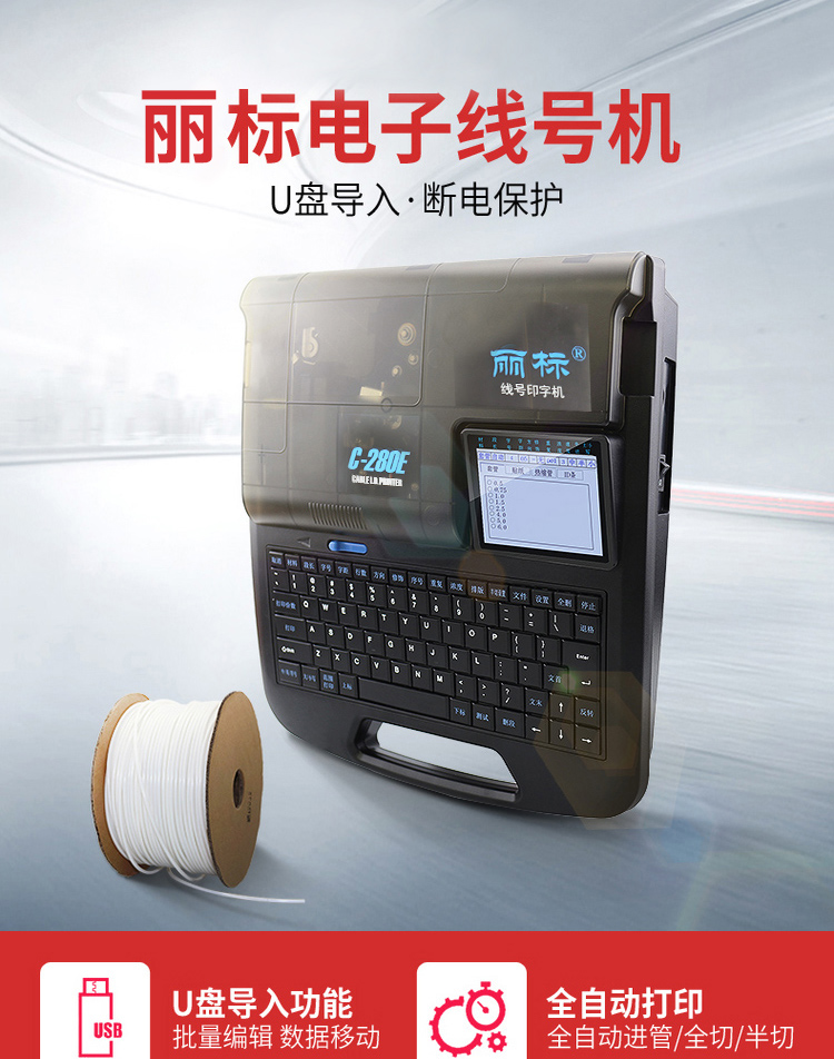 7、双行打印功能可在套管和标签上实现双行打印,一机多用特点。独有字符缩放功能,为用户节省耗材。独有半切刀深度调节,使半切刀寿命更长久。
